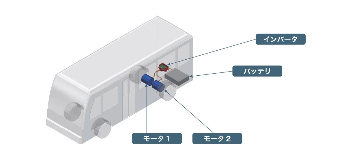 小型、軽量化されたインバータは、車両レイアウトの自由度に貢献し、フラットエリアの拡大を実現します。