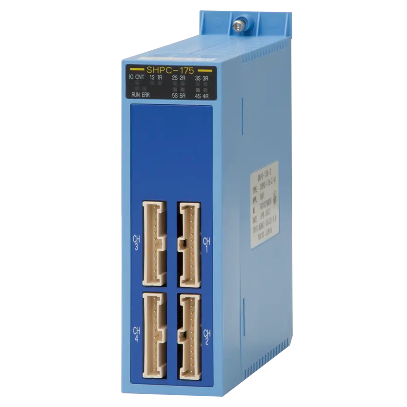 アブソリュート型の同期制御を実用化し、多くの商用輪転印刷機駆動システムを納入してきました。アブソリュート型同期制御とは、回転指令とモータ回転フィードバックを数値データにて行うものです。回転指令モジュールとしてSHPC-175-Zを、モータにアブソリュートエンコーダを使用し、モータ1回転あたり25bitの分解能を実現しています。