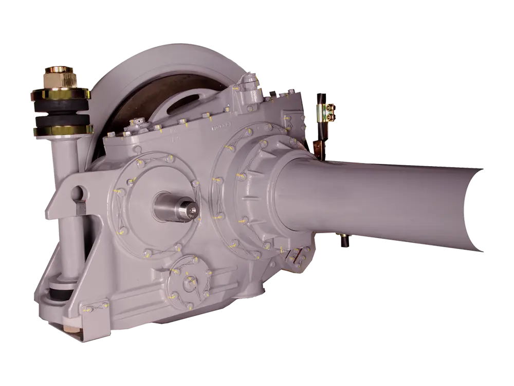 歯車箱は車軸交換が容易な割形、構造がシンプルな一体形があり、材質は鋳鋼製、騒音低減効果があるダクタイル鋳鉄(FCD)製、高速車両用に軽量化を図ったアルミ合金製などが選択可能。