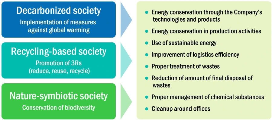 A sustainable society as envisaged by the Company is the combination of a "low-carbon society," a "recycling-based society" and a "nature-symbiotic society."